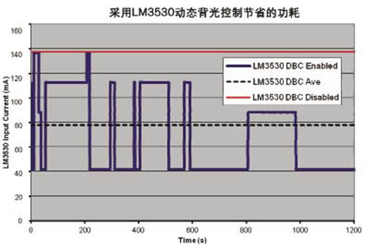 例如,如果我们使用一个电感式升压LED驱动器(德州仪器的LM3530)以19mA驱动一串六个LED的背光3.5英寸屏幕来收看电视节目(约20分钟),驱动器将不断从电池消耗137mA(假设VBATTERY = 3.6V)电流。使用相同背光驱动器的DBC,如果将亮度设置为满度的100%、75%、50%和33%水平,平均电流消耗可下降到78mA。与没有使用DBC的设计相比,有DBC的背光驱动器消耗的平均输入电流将减少45%。