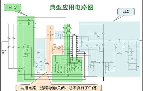 图1是采用NCP1910的典型应用电路图共用电路,它包括远程PFC段、LLC段,以及实现导通/关闭、功率良好(PG)等的共用电路。