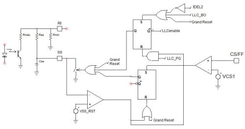2. 完整软启动:SS引脚接地条件是:启动,或CS/FF高于VCS1(1 V),或BO激活,或tDEL2结束。仅在VSS低于VSS(RST)时,SS引脚上的开关被释放开路,执行从启动(重启)开始的完整软启动。