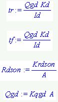 其中:Qgd = 门或漏极电荷;Kd = 常数;Id = 在门阀值上的门驱动电流;A = 裸片面积;