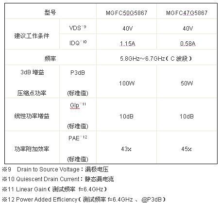 ?大功率,输出功率分别达到100W(MGFC50G5867)和50W(MGFC47G5867)