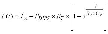 图5显示等效的电感温度上升与时间大约具有一阶指数关系。这再次得出等式: