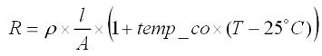 电感线圈的电阻温度系数导致电感直流电阻会随着温度变化。线圈通常为铜制,温度系数约为 3.9mΩ/℃,计算其电阻的等式如下: