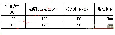 开关电源在负载短路时输出电压会降低,同理,在负载开路或空载时输出电压会升高。在检修中一般采用假负载取代法,以区分是电源部分有故障还是负载电路有故障。关于假负载的选取,一般选取40W或60W的灯泡作假负载(大屏幕彩色电视机可选用100W以上的灯泡作假负载),优点是直观方便,根据灯泡是否发光和发光的亮度可知电源是否有电压输出及输出电压的高低。但缺点也是显而易见的,例如60W的灯泡其热态电阻为500Q,而冷态电阻却只有50Ω左右。根据下表可以看出:假设电源主电压输出为100V,当用60W灯泡作假负载时,电源工作时的电流为200mA,但启动时的主负载电流却达到了2A,是正常工作电流的10倍,因此,用灯泡作假负载,易使电源启动困难,由于灯泡功率越大,冷态电阻越小,因此,大功率灯泡启动电流更大,电源启动更困难。