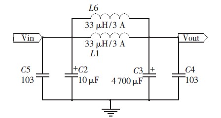 其中,L=33 μH,C=4 700 μF, 图4 为低通滤波器电路图。