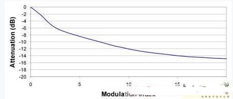 图2:更大的调制指数可以进一步降低峰值EMI性能。