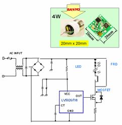 该系列是安森美半导体成员公司三洋半导体的LED控制器--LV5026M、LV5028TT和LV5027T,其中LV5026M具有TRIAC调光、PWM调光、模拟调光和功率因数校正功能;LV5028TT只有TRIAC调光和功率因数校正功能。LV5026/7/8 TRIAC调光电路如图3所示。