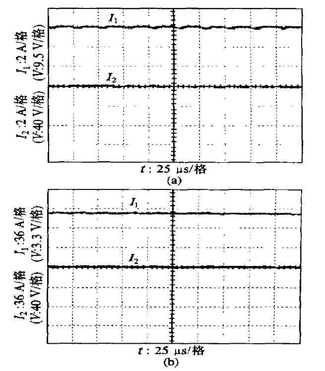图5 示出不同充电电压时的充电电流波形。由图可见,在不同充电电流给定下均取得了良好的实际充电电流波形,并且当蓄电池电压变化时,因在线的变参数PI 调节,充电电流保持恒定,因此系统具有良好的动态性能和恒流特性。目前该充电电源己在多艘大型船舶中使用。
