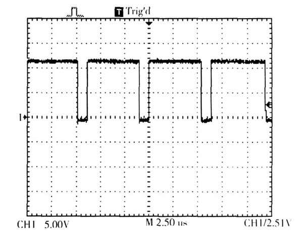 通过示波器采样肖特基二极管两端的波形,同样以3 颗LED 负载为例进行采样。