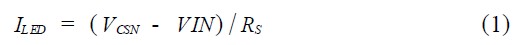 保持采样端(CSN) 输入电压值为IC 内部设定值相对于VIN 电压值不变即可实现恒流。因为: