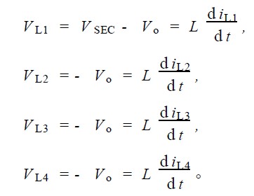 通过以上分析可以看出, 倍流整流结构的二次侧2 个滤波电感电流在滤波电容上相互叠加, 从而使得输出电流纹波变得相当小。