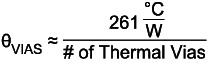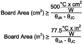 所需的PCB板面积近似值未考虑到散热孔所发挥的作用,这些散热孔将热量从顶部金属层(封装连接至PCB)向底部金属层传递。底层用作第二表面层,对流可以从这里将板上的热量传送出去。为了使板面积近似值有效,需使用至少8~10个散热孔。散热孔的热阻近似于下列方程式值。