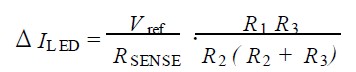 会导致电源功率耗散,但本设计中RSENSE = 0. 5Ω,则PRSENSE 相当小,另一方面,系统效率定义为LED 消耗的功率与电源提供的功率之比, 即η = PLED/ PPOWER. 其中, PPOWER =V in3 Ivin , PLED = V LED*