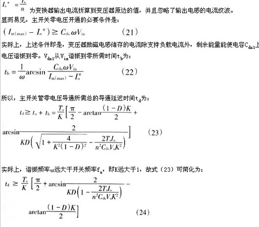 6)设定死区延迟时间td,针对不同的软开关实现方法,分别从式(21)、(24)或(25)、(26)求出所需的系数k。