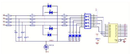 印制板设计时,要考虑到干扰对系统的影响,将电路的模拟部分和数字部分的电路严格分开,对核心电路重点防护,将系统地线环绕,并布线尽可能粗,电源增加滤波电路,采用DC-DC隔离,信号采用光电隔离,设计隔离电源,分析容易产生干扰的部分(如时钟电路、通讯电路等)和容易被干扰的部分(如模拟采样电路等),对这两种类型的电路分别采取措施。对于干扰元件采取抑制措施,对敏感元件采取隔离和?;ご胧⑶医窃诳占浜偷缙侠嗬?。在板级设计时,还要注意元器件放置要远离印制板边沿,这对防护空气放电是有利的。样电路的原理图设计参见图1。