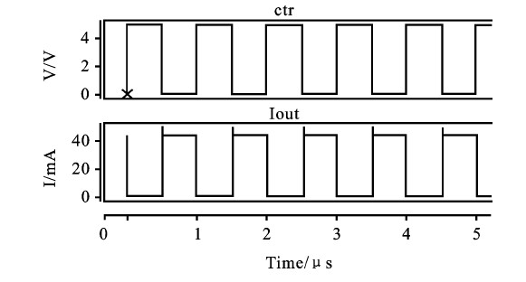 控制ctr信号变化时驱动电流变化情况如图3.结果显示ctr对驱动电流具有输出使能控制作用,测量得到控制信号ctr响应时间仅为7ns.