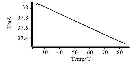 设置Rset为500Ω、Vcc为3V,令电路工作的环境温度为25℃~85℃时,恒流输出情况如图6.驱动电流由37.3mA变化到38.1mA,波动百分比2.14%.
