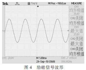 通过数字示波器观察电路励磁信号,自整角机输出信号及接口电路变换输出信号,结果波形如图4~图8所示。