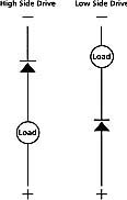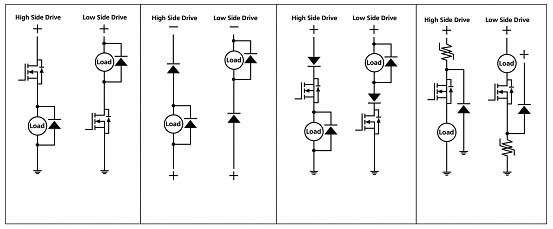 对于将大功率MOSFET用于各种负载的固态开关动作的电子???,其他极性接反的情况主要集中在驱动配置的高压侧或低压侧(见图3a)。在极性接反的状态下,大功率MOSFET的内在二极管变为正向偏置,并允许电流能够流至与其连接的电机、灯或电磁阀负载(见图3b)。