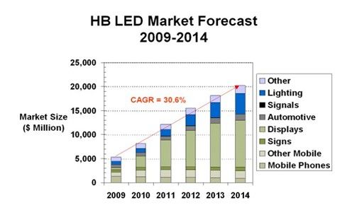 根据 Strategies Unlimited 公司的数据 (参见图 1),到 2012 年,高亮度 (HB) LED 的市场规模预计将达到 120 亿美元,到 2015 年,该市场将增长到 202 亿美元,年复合增长率为 30.6%。目前,用来给显示器进行背光照明的 LED 是这种前所未有的增长的主要驱动力。应用包括高清电视机(HDTV)、汽车显示器和大量手持式设备。为了保持这种令人惊叹的增长率,LED 不仅必须提供增强的可靠性、更低的功耗和更小 / 更扁平的外形尺寸,而且必须实现对比度、画面清晰度和色彩准确的明显改进。此外,汽车、航空电子设备和航海电子产品的显示器必须最大限度地实现所有这些改进,同时能接受从明亮的太阳光到没有月亮的夜晚等多种环境照明条件。这些由晶体管液晶显示器(TFT-LCD) 实现的显示应用包括信息娱乐系统、计量表和种类繁多的仪表显示器。用 LED 对这些显示器进行背光照明引起了一些独特的 LED IC 驱动器设计挑战,因为要在多种环境照明条件下优化显示器的可读性。这要求 LED 驱动器能提供非??淼牡鞴獗群透咝首唬蹦艹惺芷抵邢喽钥量痰牡缂拔锢砘肪车难峡嵝?。最后,这些解决方案必须提供非常扁平、紧凑的占板面积,同时提高性价比。