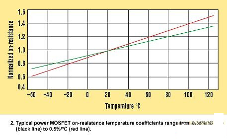 对于开关MOSFET和同步整流器两者,都是选择作为此迭代过程开始点的最大允许裸片结温(TJ(HOT))。大多数MOSFET数据参数页只给出25°C的最大RDS(ON),,但近来有一些也提供了125°C的最大值。MOSFETRDS(ON)随着温度而提高,通常温度系数在0.35%/°C至0.5%/°C的范围内(图2)。如果对此有所怀疑,可以采用更悲观的温度系数和MOSFET在25°C规格参数(或125°C的规格参数,如果有提供的话)计算所选择的TJ(HOT)处的最大RDS(ON):RDS(ON) HOT =RDS(ON) SPEC ×[1+0.005×(TJ(HOT)?TSPEC)]