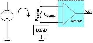 这种方法称为高端电流检测。检测电阻上的差分电压仍然可用来直接测量电流,不过现在电阻上有一个非零共模电压。这种配置的技术难题是,必须从电源共模电压中分辨出小的差分检测电压(图 4)。