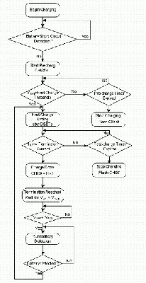 目前锂离子电池的充电器常采用三段充电法,即预充电模式(Pre-Charging Mode)、定电流充电(Fast Charging Mode)、定电压充电模式(Constant Voltage Mode)。锂离子电池终止放电电压为2.5V。设计完善的充电器可对过放的电池进行挽救修复,即在正式充电前进行预处理。于充电前先检测电池的电压:若电池电压大于 3V,则按正常方式充电;若电池电压低于3V,则以小电流(约为10%的定电流模式充电电流)充电称之为预充电模式,让处于深度放电状态下而溶解的钝化膜进行还原。此外,当电池过度放电时,还可能释出部分铜金属在阳极造成短路,此时若以高电流进行强迫充电就会导致电池过热,而预充电阶段则能避免这种现象发生。等充到3V后再按正常定电流方式充电。