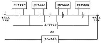 但是并联充电方法需要采用多个低电压、大电流的充电电源为每一只单体电池充电,存在充电电源成本高、可靠性低、充电效率低、连接线径粗等缺陷,因此目前没有大范围使用这种充电方法。