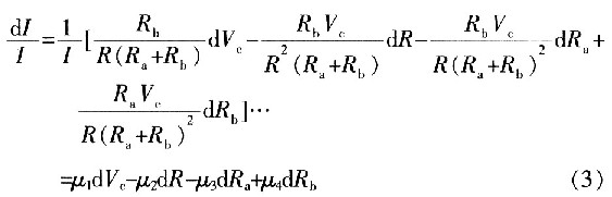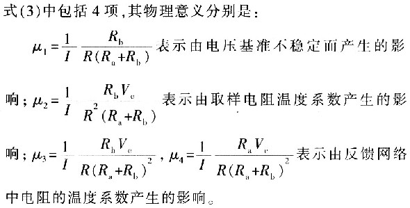 式中,Vc为基准电压,Ra、Rb为反馈网络中的电阻,R为取样电阻,在理想情况下R、Ra、Rb恒定不变。