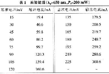 图5结果表明基准电压与输出电流成正比例关系,通过调节基准电压,可以改变LD的输出功率,即LD输出功率连续可调。