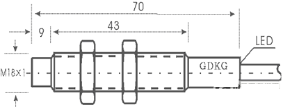 图2 CLG型M18×70标准结构开关外部尺寸图
