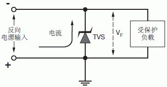 在反向电源输入模式中,电源线电压与TVS VF的电压相同,这种反偏模式会引起电子线路故障,外延型TVS的低正向压降能够很好地解决这个问题,如图8所示。
