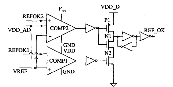 此外,本设计中还设置了一个REF-OK??槔磁卸仙系绾蟮缭聪低呈欠褚呀胝9ぷ髯刺?。