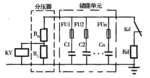 脉冲电容器储能后,由控制电路发送命令进行触发放电(ETcG发射)。ETCG发射精度和一致性与PPS储能量密切相关,电容器储能大小与其充电电压的量值平方成正比,因此控制电路必须能精确控制充电电压量值,这可以通过与被充电容器组并联"分压器一电压继电器组"来实现,见图2。