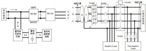 微网逆变器系统将可再生能源(如太阳能,风能,水能,地热能,生物质能等)转变为与电网同频、同相的交流电,优先输送给当地负荷供电,剩余的电能馈入电网。微网逆变器系统主要包括:光伏组件、蓄电池组、蓄电池充放电设备、DC/DC变换器、微网逆变器、静态开关等。