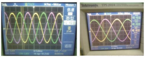 光伏并网发电系统要实现并网,必须使逆变输出与电网电压的幅度、相位与频率达到一致,否则将会使电网谐波增加、电能质量下降,并产生并网环流,甚至造成光伏发电系统的损坏。因此在并网过程中必须进行同步锁相控制、输出电压幅度控制以满足并网的要求。根据IEEEStd1547-2003规定最大相位误差为20度,瞬时电压误差不能超过电网电压的10%、最大频率误差不能超过0.3Hz。图5为独立工作模式时纯电阻负载两端的电压波形。