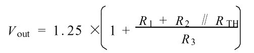 为保证液晶显示能在较宽的温度范围正常工作,温度补偿电路十分必要。所用液晶屏的驱动电压与温度特性如图4 实线所示。由此利用热敏电阻的温度特性及电阻的串并关系,优化出了电路设计,具体电路如图5。R1=638 kΩ,R2=110 kΩ,R3=62 kΩ,RTH的特性如表1。用R1、R2 、R3 、RTH和DC/DC(MAX1606)输出电压的计算公式:
