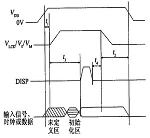 所有液晶显示器对于上电、下电时序都有严格要求。如果上电、下电时序不符合要求,则不能正常显示,常?;岢鱿致衣?、锁存、残留显示等现象。以日本日立公司驱动芯片HT66130/HT66137驱动320×240液晶显示屏为例,对上电、下电时序的要求如图3所示,一般液晶显示驱动芯片要求也大致如此。