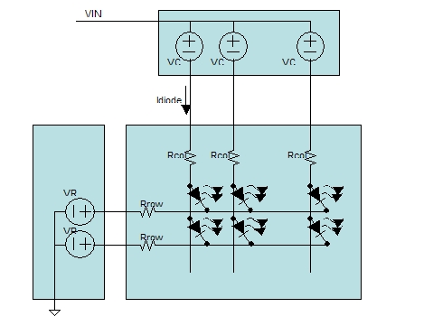 其中:V二极管是二极管的前向压降;I二极管是流经二极管的电流;Rcol是列连接的电阻;Rrow是行金属的电阻;VCD是列驱动器所需的开销;VRD是行驱动器所需的开销;在典型应用中,VIN大约为20V。