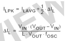 其中:ΔIL是电感电流的纹波峰峰值,单位是A;L是电感值,单位是H;FOSC是开关频率。