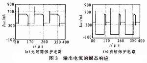 基于TSMC O.18μm CMOS工艺,仿真结果如图2~图3所示。仿真结果表明输出短路时,输出电流为O,P功率管被关断,实现短路?;?。