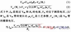 式中IDM5为VM5的漏电电流,RL=VOUT/Imax,CL为负载电容,其中Imax是系统规定的最大负载电流。要使系统能正常启动,IDM5必须满足IDM5>VOUT/RL,因此合理选取参数,就能正常启动。
