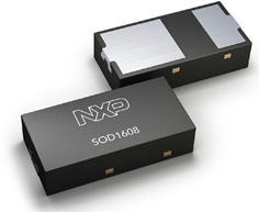 - 超小尺寸 (仅1.6 x 0.8 mm),无引脚SMD塑料封装DFN1608D-2
