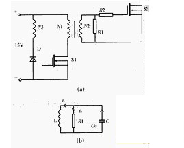 电路原理图如图3(a)所示,N3为去磁绕组,S2为所驱动的功率管。R2为防止功率管栅极、源极端电压振荡的一个阻尼电阻。因变压器漏感较小,且从速度方面考虑,一般R2较小,故在分析中忽略不计。其工作波形分为两种情况,一种为去磁绕组导通的情况,见图4(a);一种为去磁绕组不导通的情况,见图4(b)。