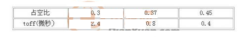 该电路具有以下优点:①电路结构简单可靠,实现了隔离驱动。②只需单电源即可提供导通时正、关断时负压。③占空比固定时,通过合理的参数设计,此驱动电路也具有较快的开关速度。该电路存在的缺点:一是由于隔离变压器副边需要一个假负载防震荡,故该电路损耗较大;二是当占空比变化时关断速度变化加大。脉宽较窄时,由于是贮存的能量减少导致MOSFET栅极的关断速度变慢。表1为不同占空比时关断时间toff(驱动电压从10伏下降到0伏的时间)内变化情况。