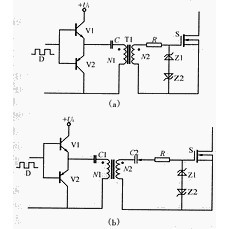 ②该电路只需一个电源,即为单电源工作。隔直电容C的作用可以在关断所驱动的管子时提供一个负压,从而加速了功率管的关断,且有较高的抗干扰能力。