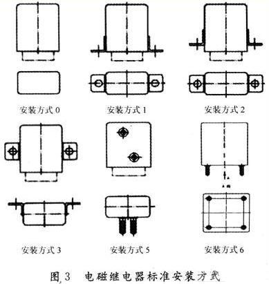 电磁继电器不同的安装方式,在不同的振动方向上,加速度的放大程度有很大的差异。SJl51A-84中规定的安装方式有6种,如图3所示。据相关资料统计,这6种安装方式对加速度的放大程度从小到大的顺序为2型,3型,5型,1型,6型,0型。但随着科技的不断发展,各行各业对电磁继电器的需求也不断增加,对电磁继电器的性能及可靠性提出了更高的要求,安装方式也随着产品的实际状态而不断变化而变化,因此设计师在设计产品的印制线路板时,一定要考虑电磁继电器的安装方式,保证其触点振动方向、衔铁的吸合方向尽量和整机振动方向垂直;同时在安装继电器的印制线路板上采取减振措施,如锁紧装置、压片安装架等,但要注意减振措施中各个边上的受力一定要平衡。