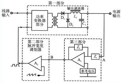 如图l所示为开关电源控制方框示意图,开关电源控制环路由以下3部分构成。