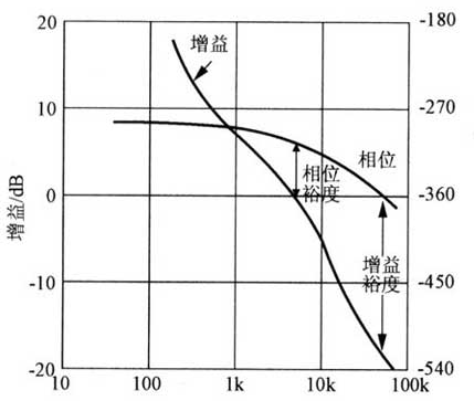 图2 开关电源的伯特图(相位裕度、增益裕度)