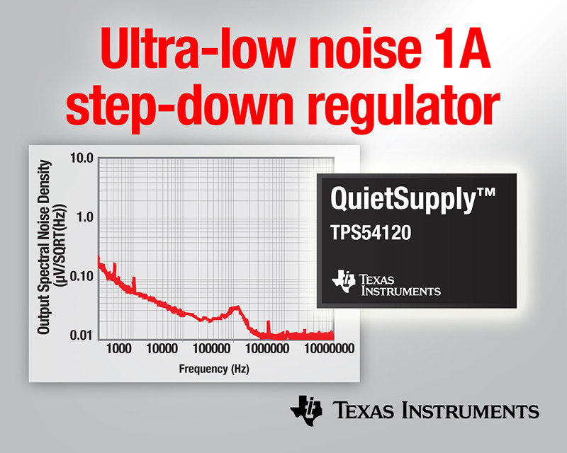 日前,德州仪器 (TI) 宣布推出最新系列稳压器,其可在不影响效率及电源性能的情况下,提供业界最低噪声的 1 A 开关电源,从而可充分满足当前噪声敏感型医疗、工业以及电信设计在峰值性能下正常工作而对平稳安静电源的需求。TI QuietSupply™ 稳压器系列的首款产品 TPS54120 与其它电源转换器件相比,可将开关噪声锐降达 99%,并可帮助最大限度提高精确数据转换器与放大器以及灵敏时钟分配电路的性能,充分满足电信、测试设备以及高端音频视频设备等应用的使用需求。
